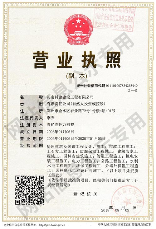 河南科建建設(shè)工程有限公司是一家以房屋建筑、建筑裝飾、建材貿(mào)易及大型建筑機械設(shè)備租賃為主營業(yè)務的成長型企業(yè)。擁有建筑工程總承包壹級資質(zhì),裝飾裝修、防水防腐保溫等專業(yè)承包壹級資質(zhì),注冊資本1.1億元。